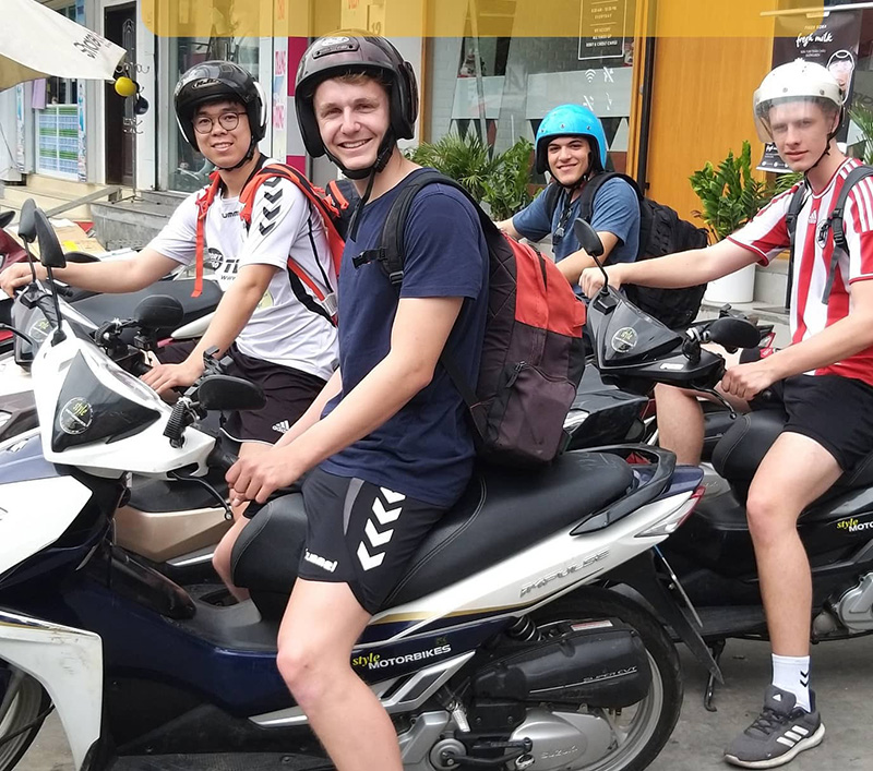 Viet Prestige Travel adventurous friends starting their motor rides.
