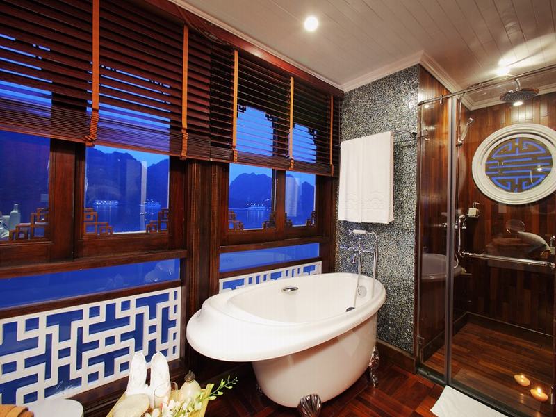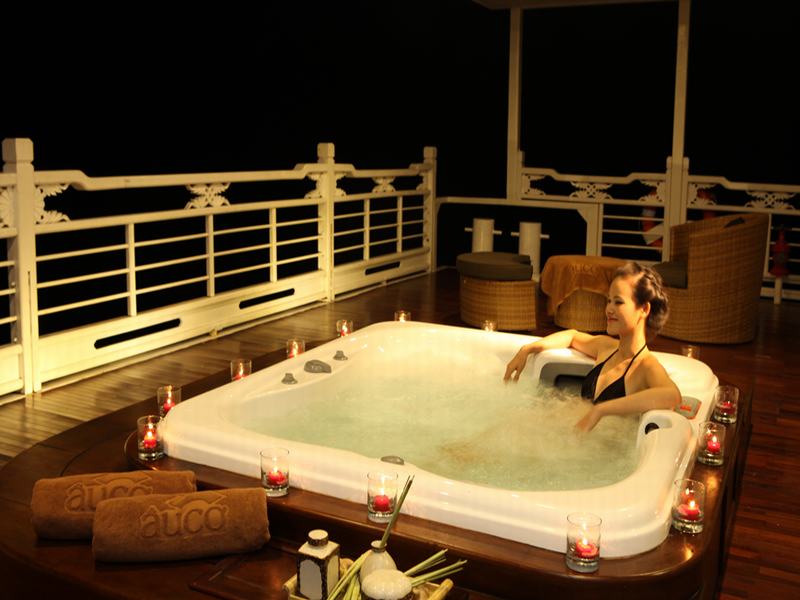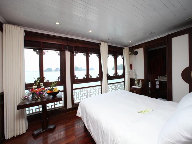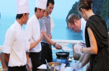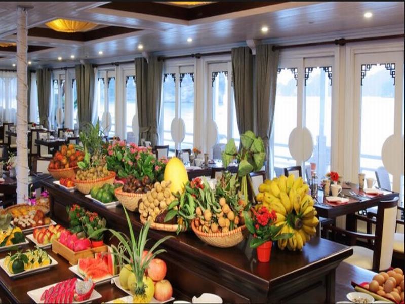 12.00: Enjoy lunch in Ha Long restaurant while The Au Co cruises around Bai Tu Long