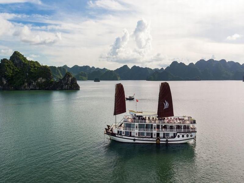 Enjoy buffet lunch with Vietnamese dishes served while cruising through the bay, passing the most beautiful and quiet areas, such as Incense Burner, Dog Stone Islet, Fighting Cock, Soi Sim beach, Coconut Three Island