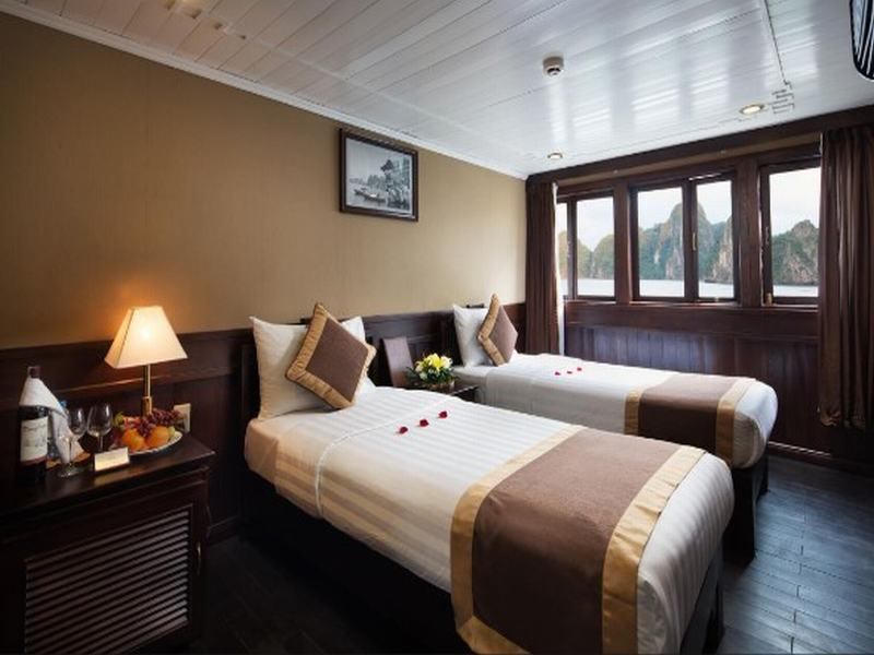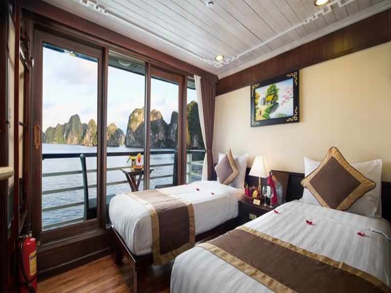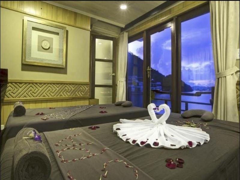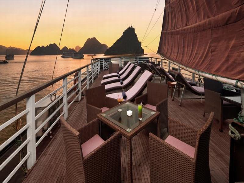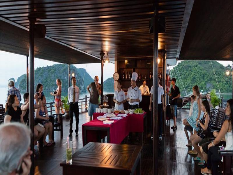 Attend the Cooking class on sundeck – How to make Vietnamese spring rolls – traditional Vietnamese food. Then enjoy Happy Hour (Buy one drink-get one free). It is time for chit chat and relaxing. Watch the magnificent sunset over Halong Bay.