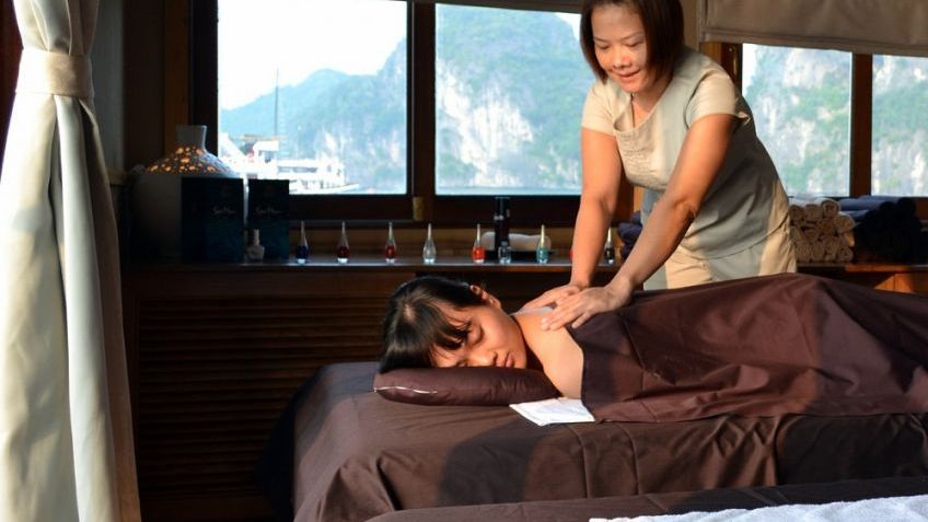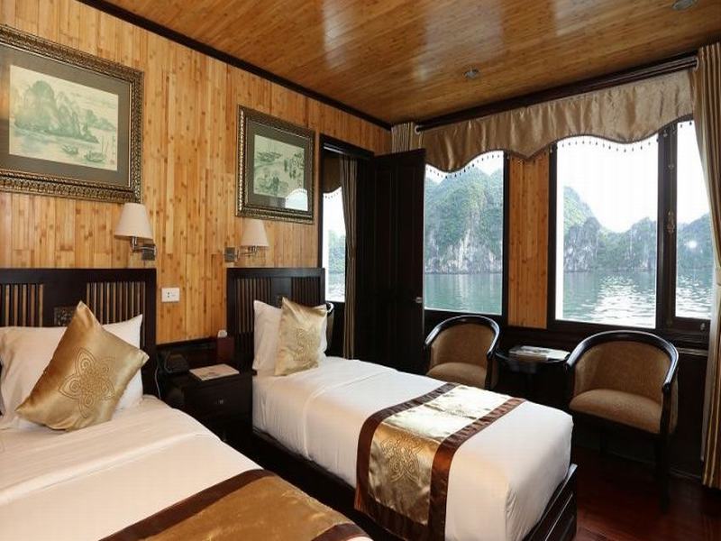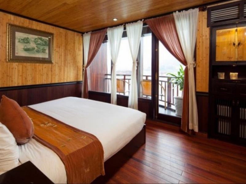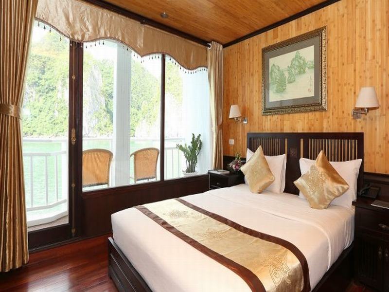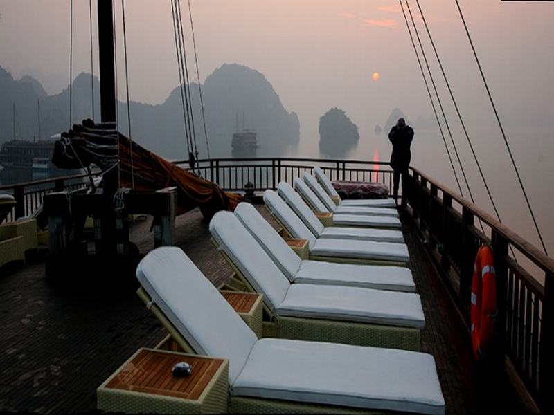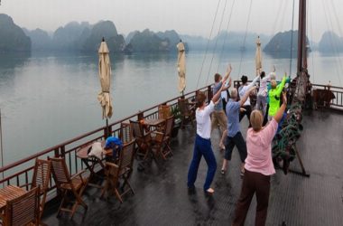 Then it is time for an early morning bath – in the Bay. By tender boat we bring the guests to a natural white sandy stretch of a beach with crystal clear water. Sporty ones can climb up to a hill top to have a last view from above over the Halong Bay before we return to the boat and cruise slowly back to Halong City, passing picturesque areas like the Titop Island, the Tam Cung Cave and Poem Mountain.