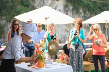 15:30: Exploring Vung Vieng Fishing Village: Guests choose to discover the daily life of the fisher communities by bamboo boat (one hour) or kayaking around Vung Vieng area (one hour)