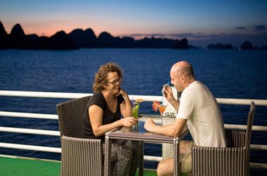 17:30: Relax and enjoy the sunset party with Happy Hour (from 5h30pm- 7h30pm) while the boat is cruising to Cong Dong-Cong Do area to anchor for overnight