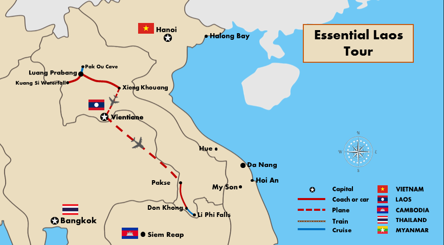 If you wish, get an early start and participate in the traditional Lao rite of giving alms to the monks. Every morning, 300 monks file through the city silently collecting offerings. After breakfast, you will visit Wat Visoun, Wat Aham and Wat Mai. And then we visit the Royal Palace Museum. After lunch at local restaurant, our guided tour for the afternoon starts with a local village of Lao minority groups at Ban Ouay Village. Then transfer to the beautiful Khouang Si Waterfalls where you can splash around in the turquoise pools or walk along the forest trails. Later, continue to Ban Xangkhong Village. Return to the city by late afternoon to catch the sunset at Wat Phabath.