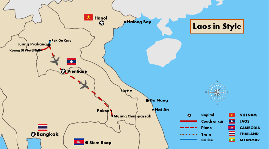 After breakfast, we enjoy a short-guided tour taking you to the main points of interest, including the city’s oldest temple Wat Sene and the magnificent Wat Xiengthong with its low sweeping roofs, representing classical Laotian architecture. We then board a cruise upstream on the Mekong River, which gives us a panoramic view of the tranquil countryside as well as an interesting visit to the mysterious Pak Ou Caves, two linked caves crammed with thousands of gold lacquered Buddha statues of various shapes and sizes left by pilgrims. En route, we stop at the village of Ban Xanghai, where the rice wine is produced. Once back in Luang Prabang city we take a short drive to Ban Phanom, a village famous for its hand weaving. We also have time to visit Ban Xangkhong and Ban Xienglek, small villages well known for silk weavings and for Saa (jute) papermaking. Overnight in Luang Prabang.