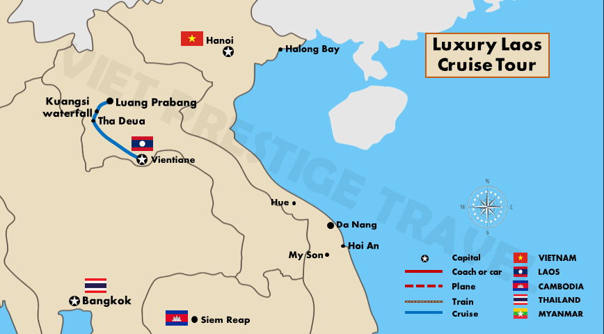 Continue downstream along the “mother of all waters”, as the Mekong is known to the Thais and Laotians. Today’s destination is the Lao capital of Vientiane, where your cruise ends at around 14:00. Disembark and transfer to your hotel in the city of Vientiane for further exploration or head to the airport for your onward flight.