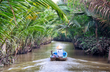 Disembark and take a pleasant walk along a village path. Visit an orchard garden, enjoy seasonal fruits and honey tea, and relax to the sounds of Southern Vietnamese folk music performed by local artists. Then, hop on a hand-rowed sampan and glide gently through the Tan Thach canal, surrounded by dense water coconut trees.