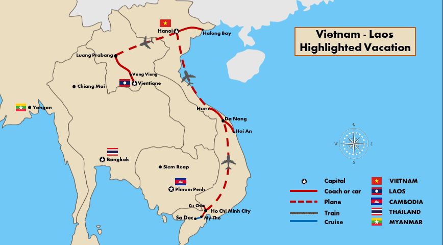 Further exploration on Bay, transfer to the airport for the flight to Luang Prabang |